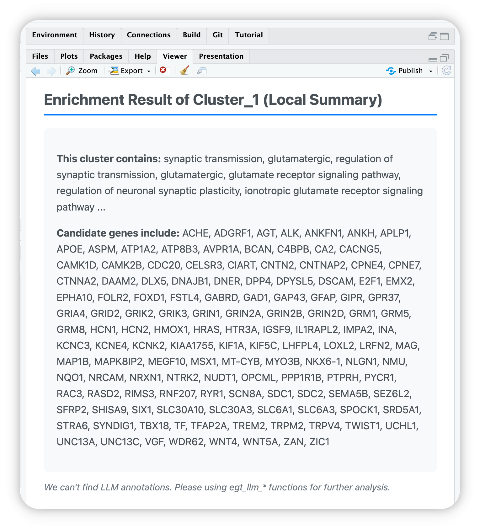 GAP43, GFAP, GIPR, GPR37, GRIA4, GRID2, GRIK2, GRIK3, GRIN1, GRIN2A, GRIN2B,